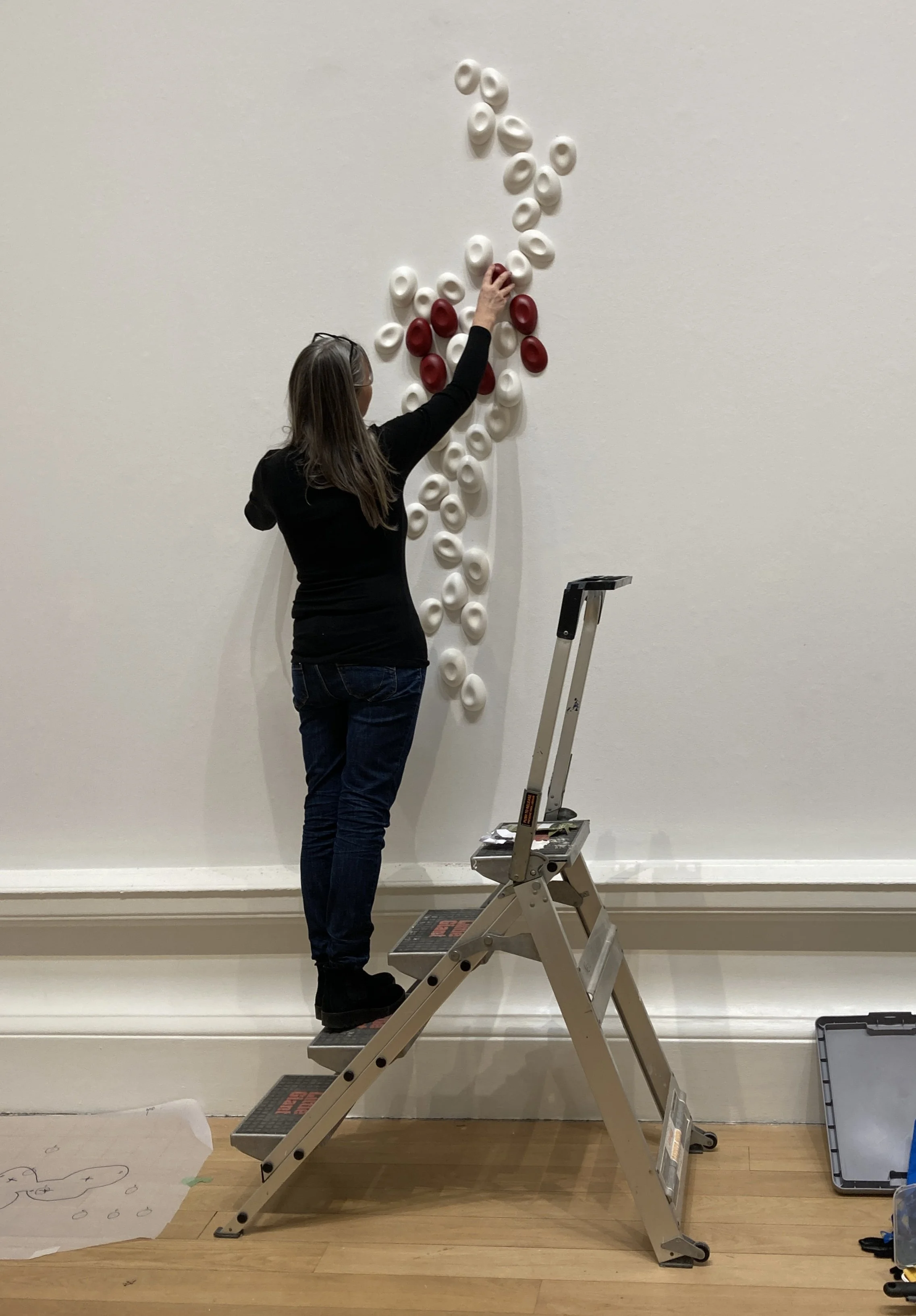This visual connection led me to my second inspiration: red blood cells. The deflated seaweed sacs reminded me of microscopic images of these life-sustaining cells—tiny, rubbery rescue dinghies coursing through our veins and arteries. Just as bladder wrack and other marine plants float in the sea, sustaining delicate ecosystems, red blood cells course through our bodies like rivers, carrying oxygen and sustaining life.